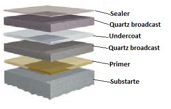 Decorative broadcast are seamless epoxy floor systems that consist of colour quartz or vinyl flakes and 100% solid epoxy binder. These systems are ideal choice for decorative purposes in light and medium duty traffic areas such as aisleways, locker rooms, bathrooms, schools, cafeterias, clean rooms, and laboratories.